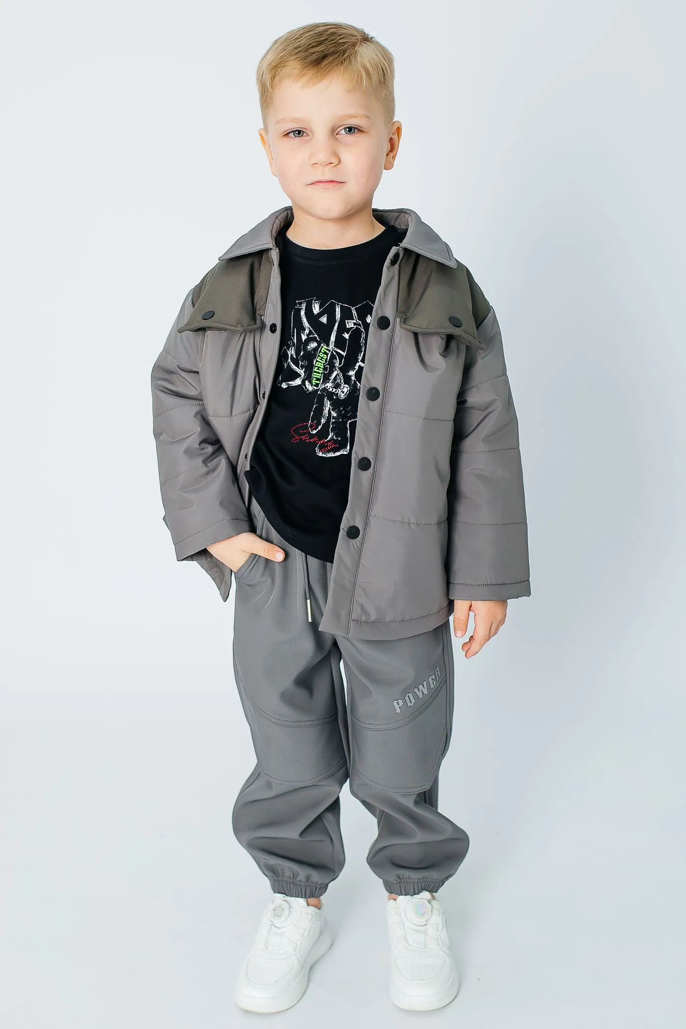 - Детская одежда. Рубашки, брюки, футболки, свитшоты, костюмы и комплекты для мальчишек. Платья, юбки, джеггинсы, брюки, футболки и комплекты для девчонок.